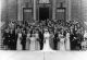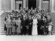 Qui sont les mariés et qui sont leurs parents ? Photographie prise sur le préau de l'église S.Marc sur la rue Beaubien à Montréal après 1931.